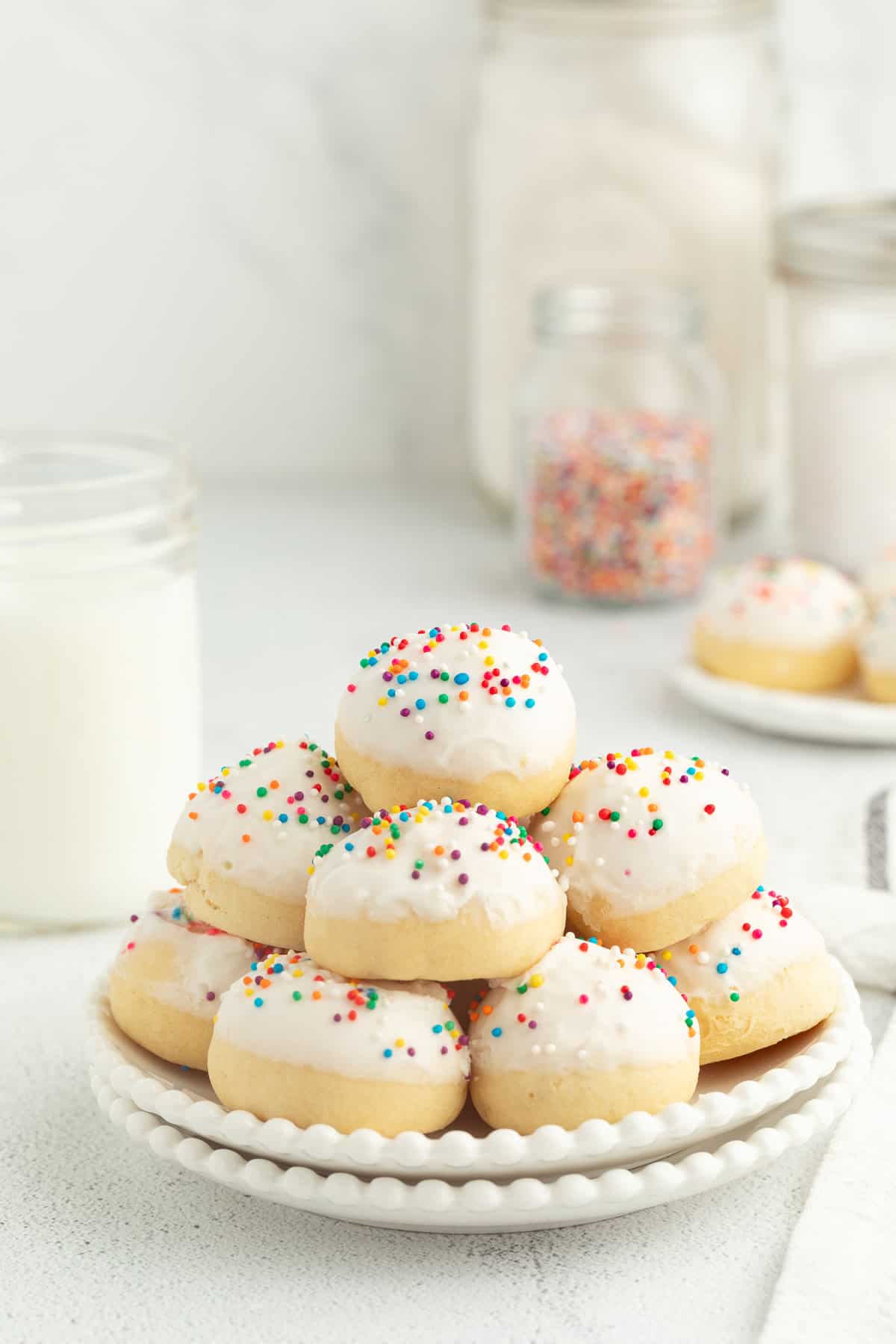 Anise cookies are traditional Italian Christmas cookies dipped in a creamy glaze and finished with colorful sprinkles. Each bite is flavored with sweet, licorice-like anise.